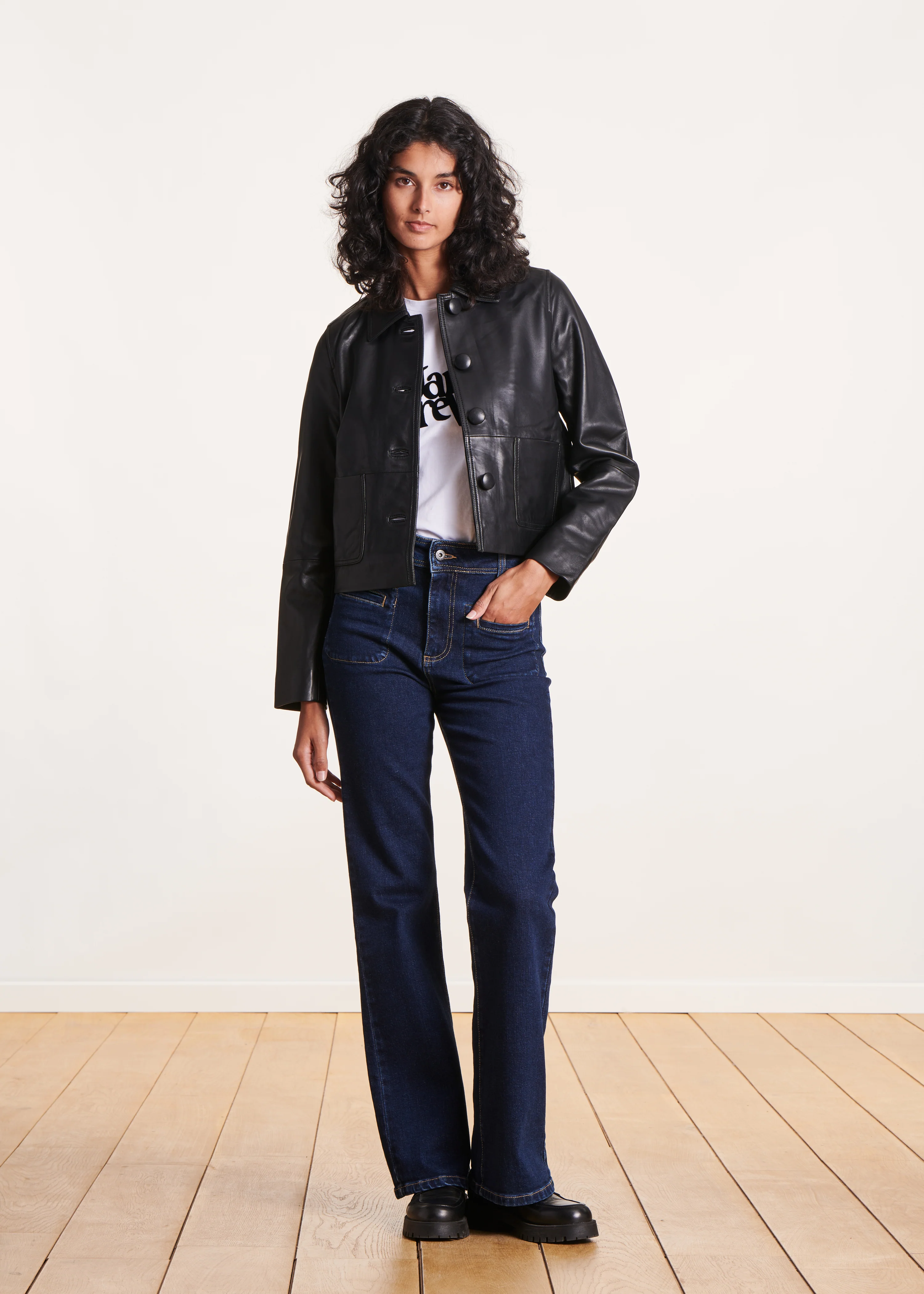 - Blouson en cuir d'agneau écoresponsable certifié