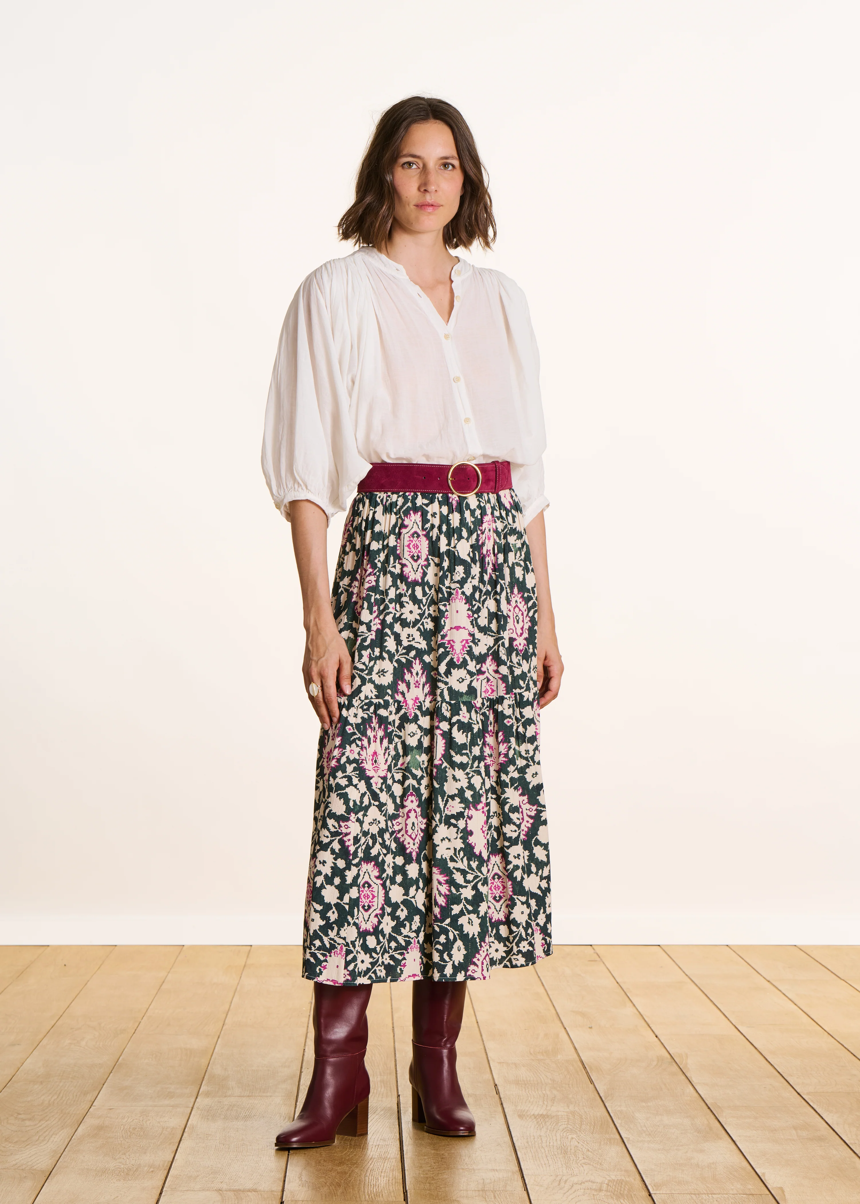 Ceinture en croûte de cuir bordeaux avec surpiqûres