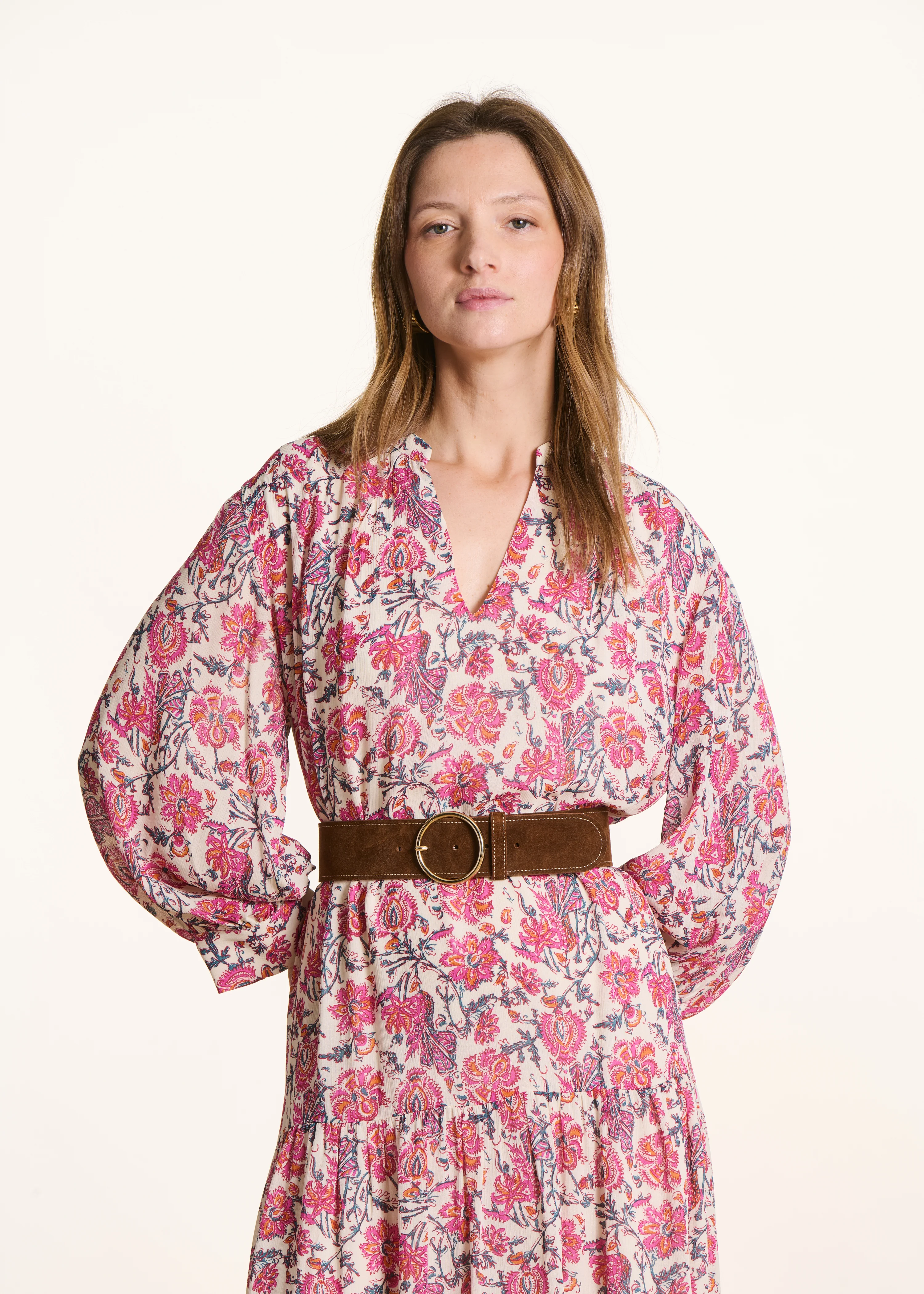 - Ceinture large porté robe/jupe en croûte de cuir avec surpiqûres