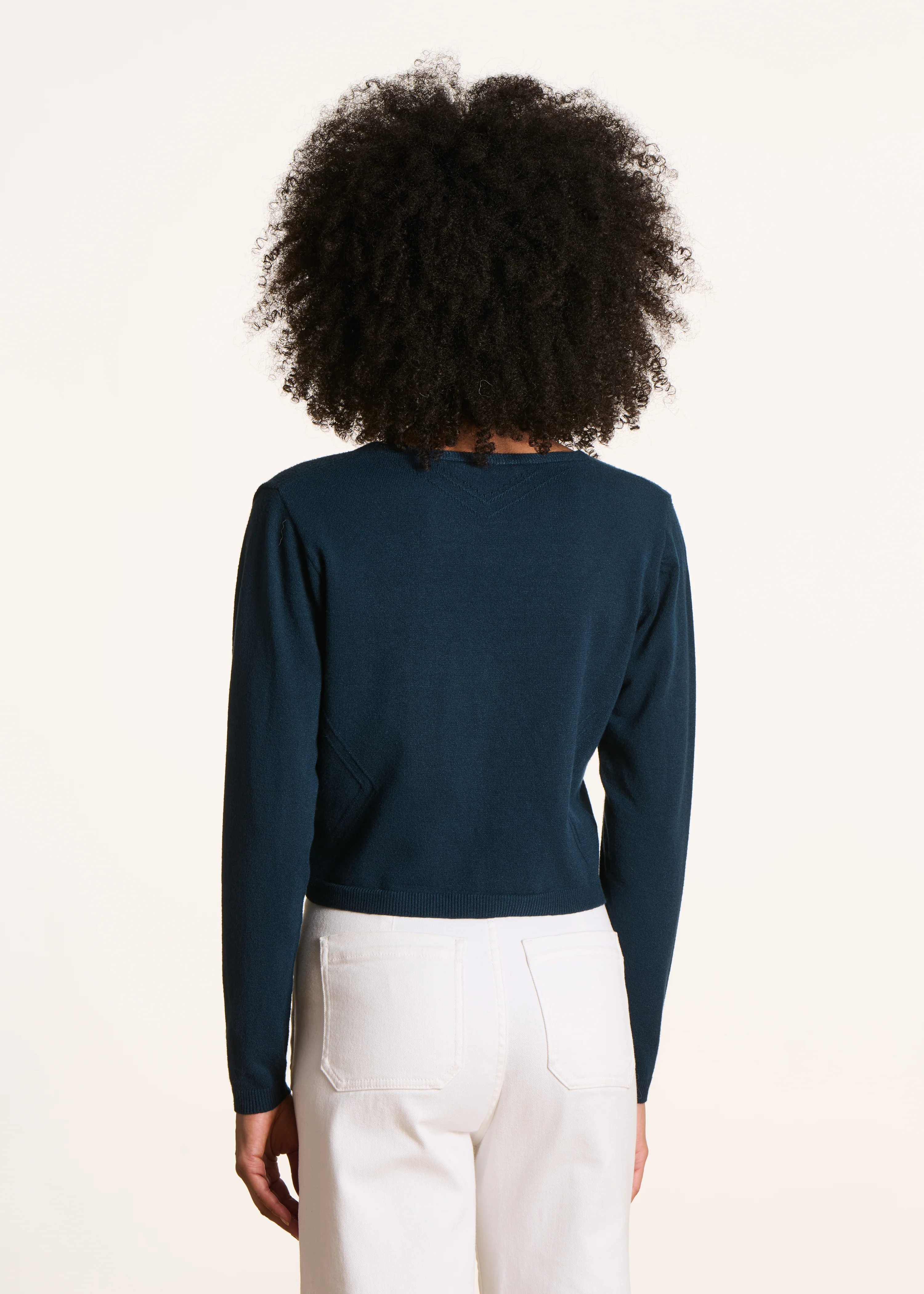 - Finitions encolure, bas de manches et bas de corps en bord-côte