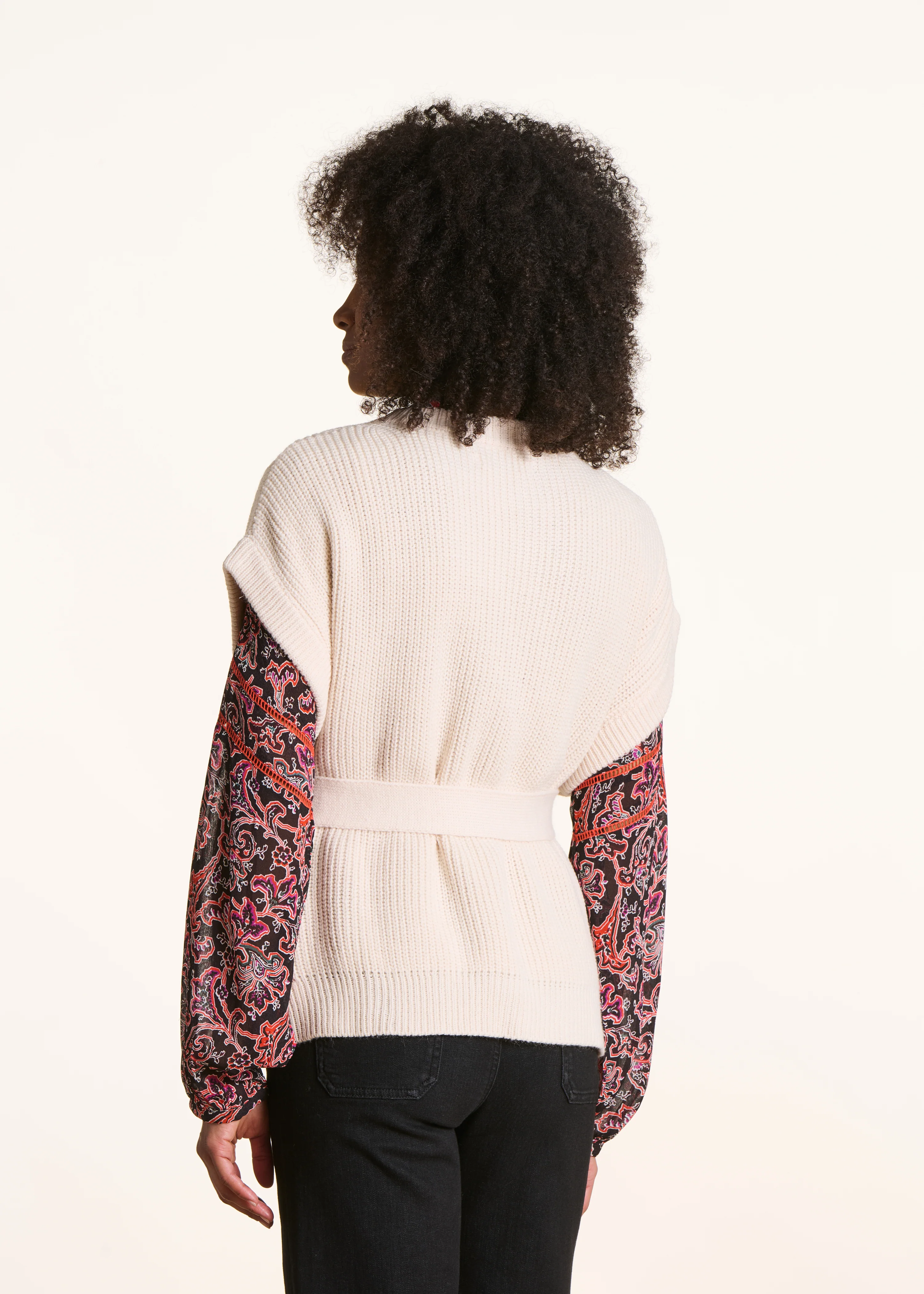 -70%Gilet ceinturé en maille côtes perlées écru—