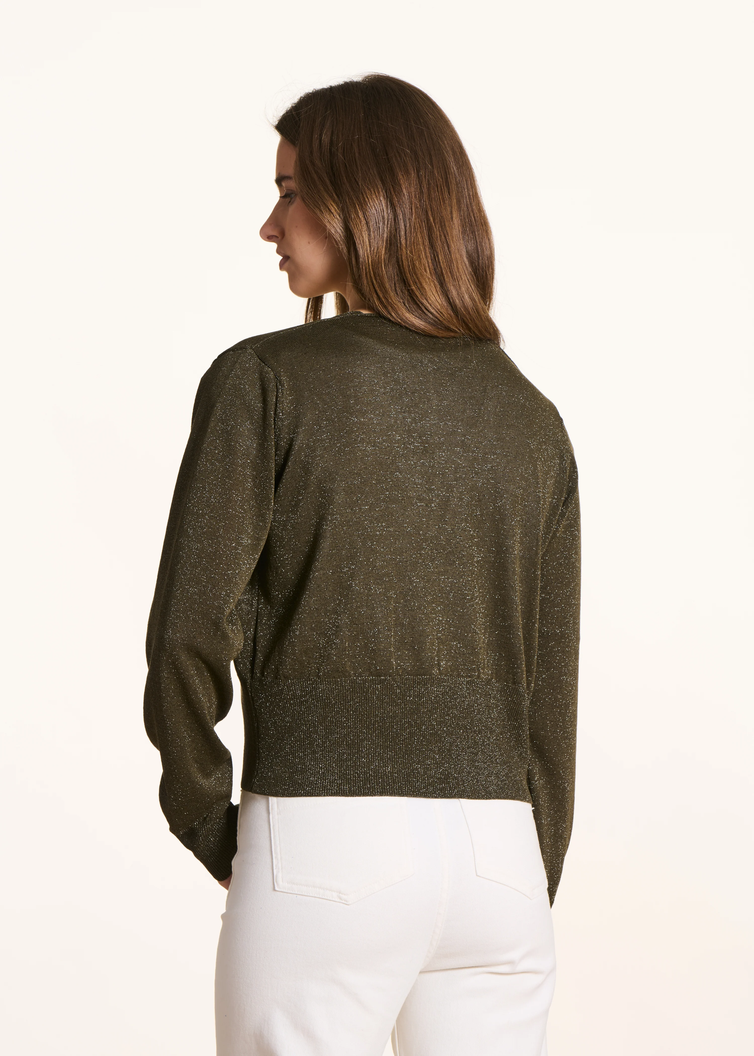 -70%Gilet cintré kaki en maille fine irisée beige—