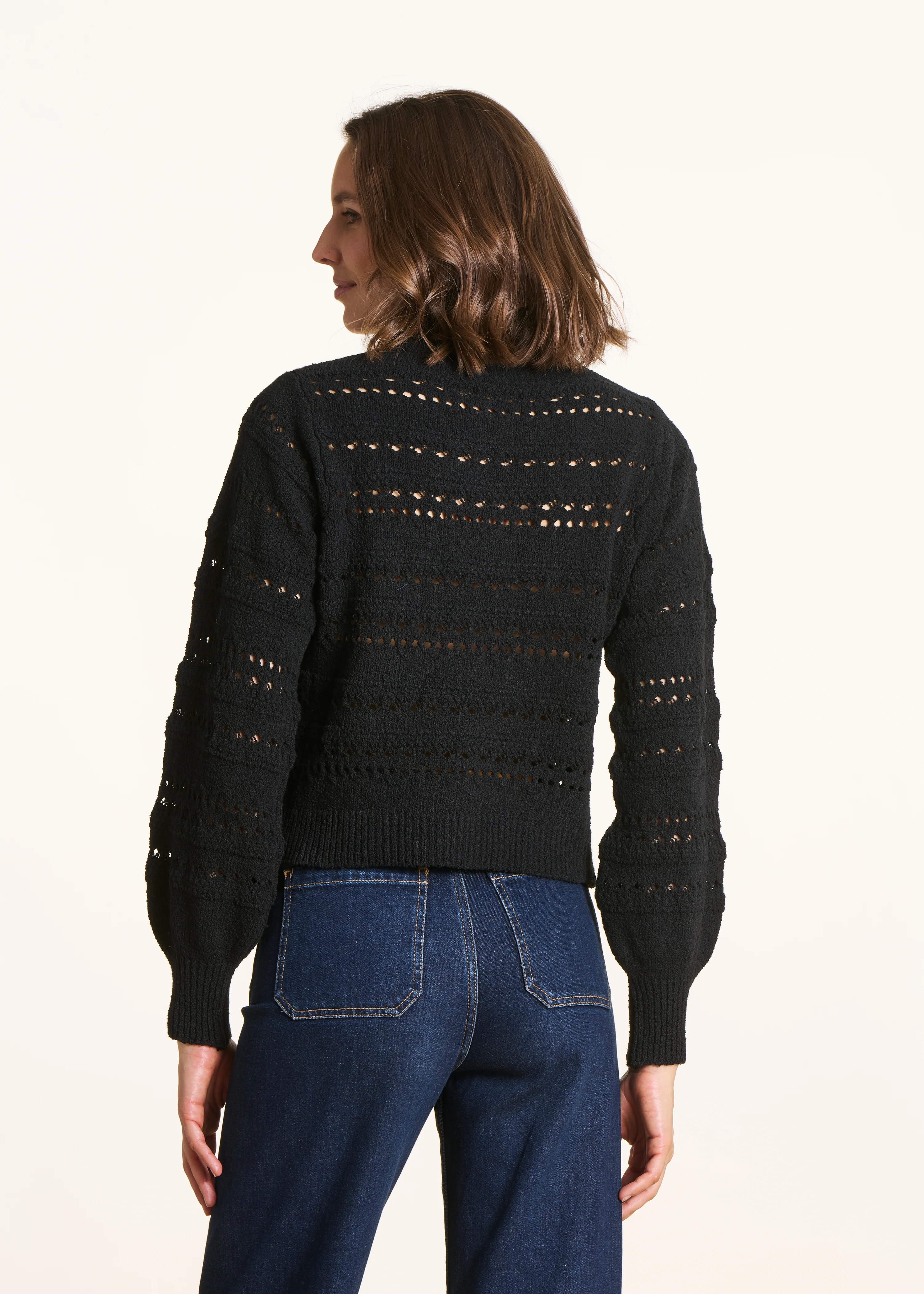 -70%Gilet noir en maille ajourée boutons fantaisie—