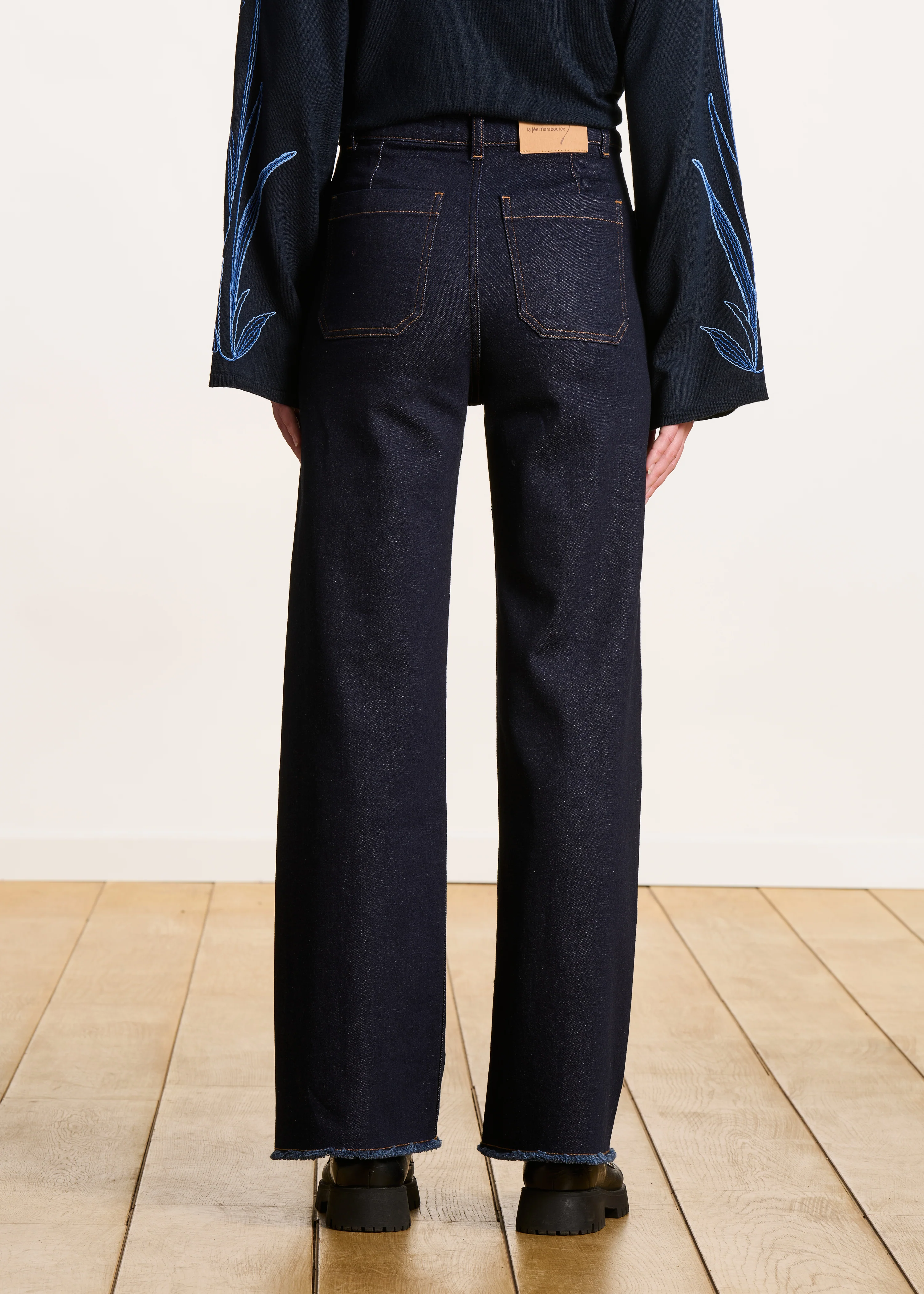 Jean foncé flare taille haute en coton biologique—