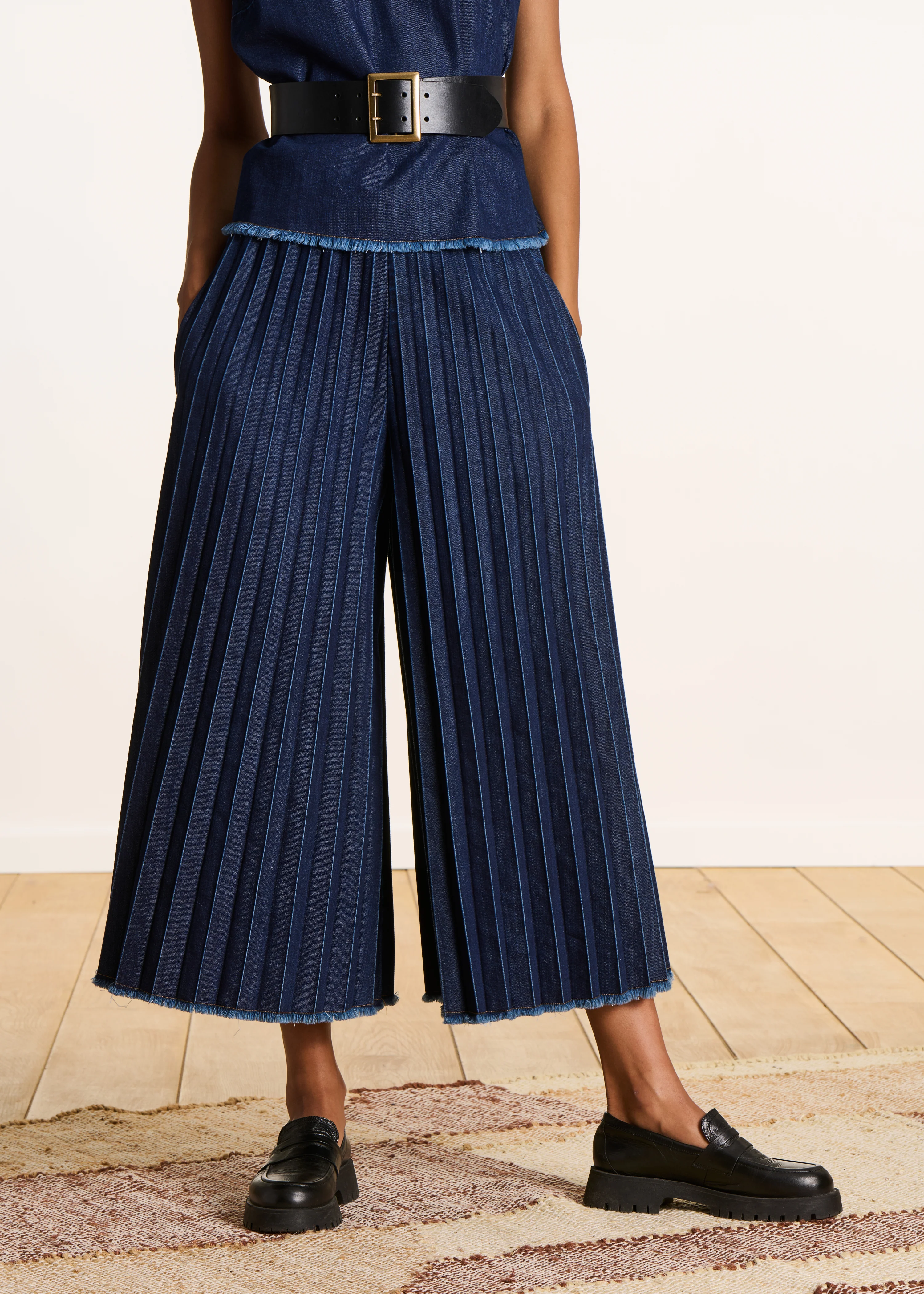 -70%Pantalon jupe culotte en jean brut taille élastiquée—