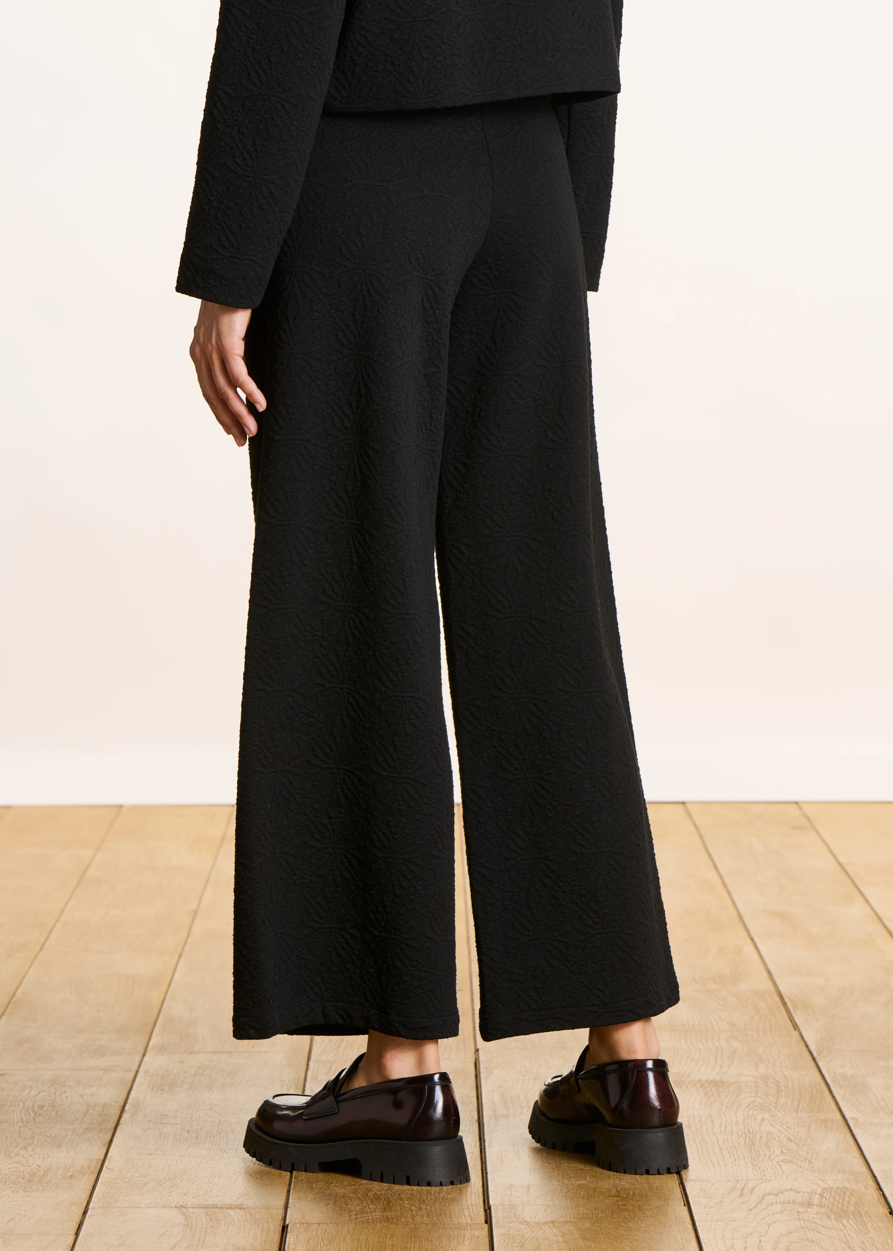 Pantalon cropped noir en milano jacquard taille élastique