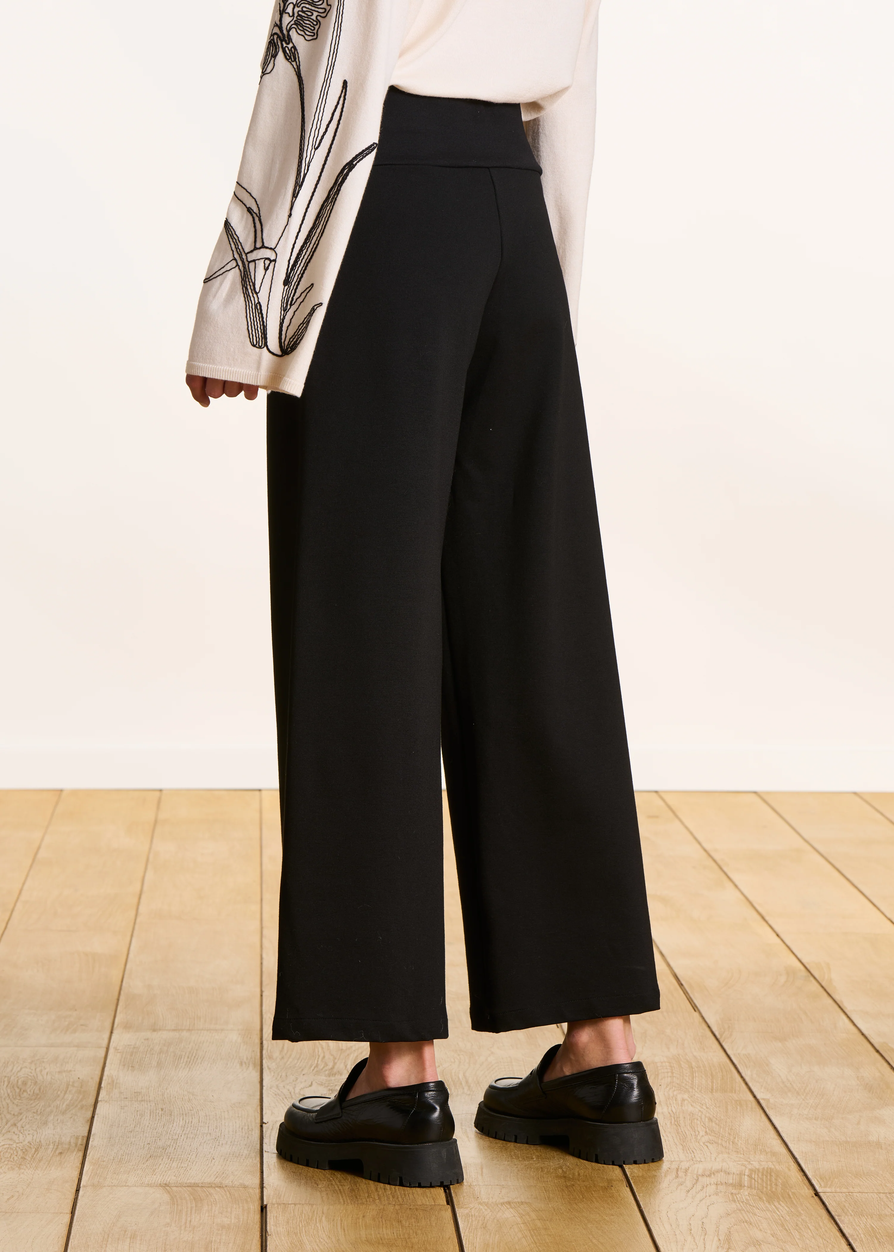 Pantalon cropped en jersey milano noir taille élastique—