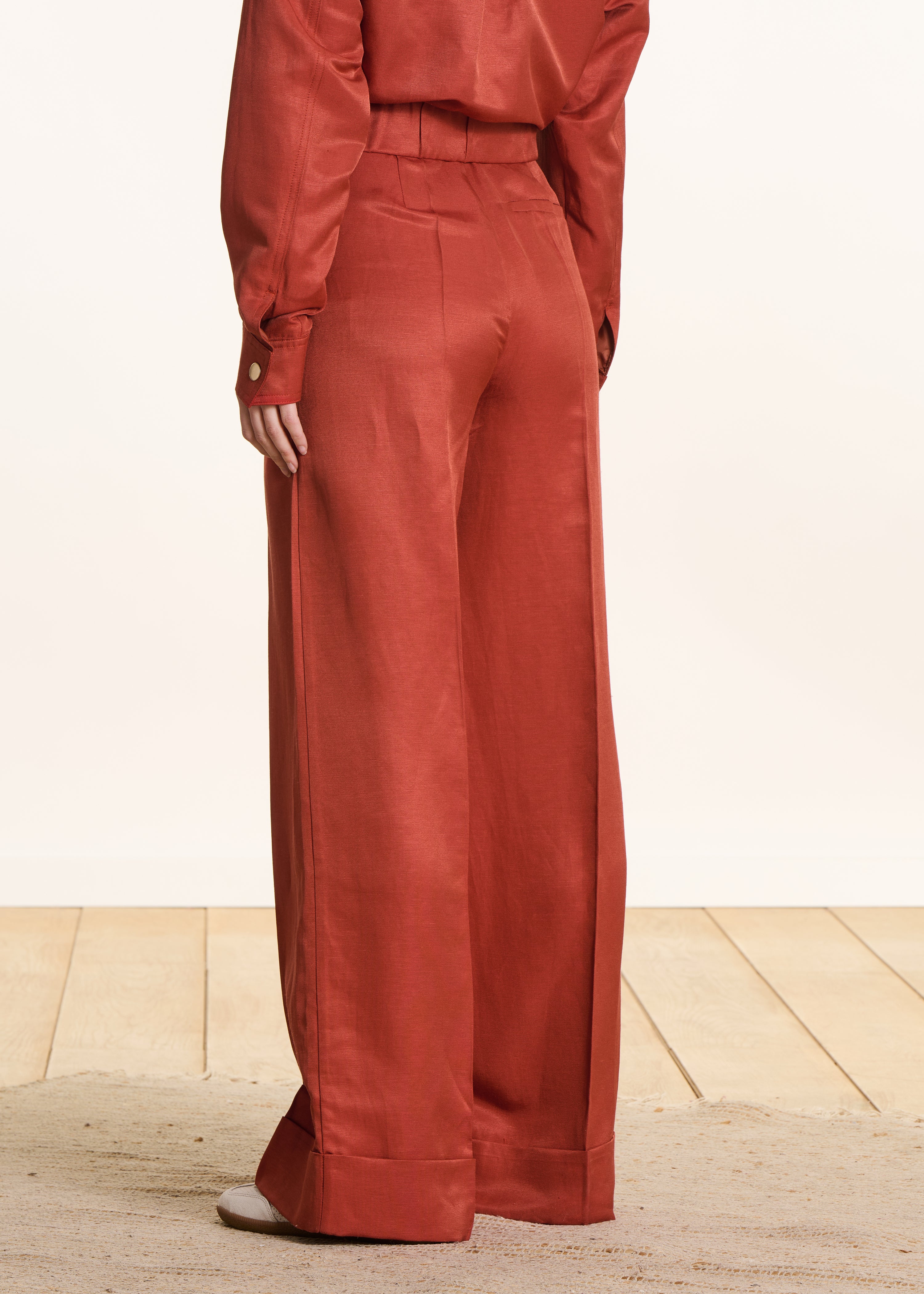- Pantalon dans un tissu en lin mélangé légèrement brillant