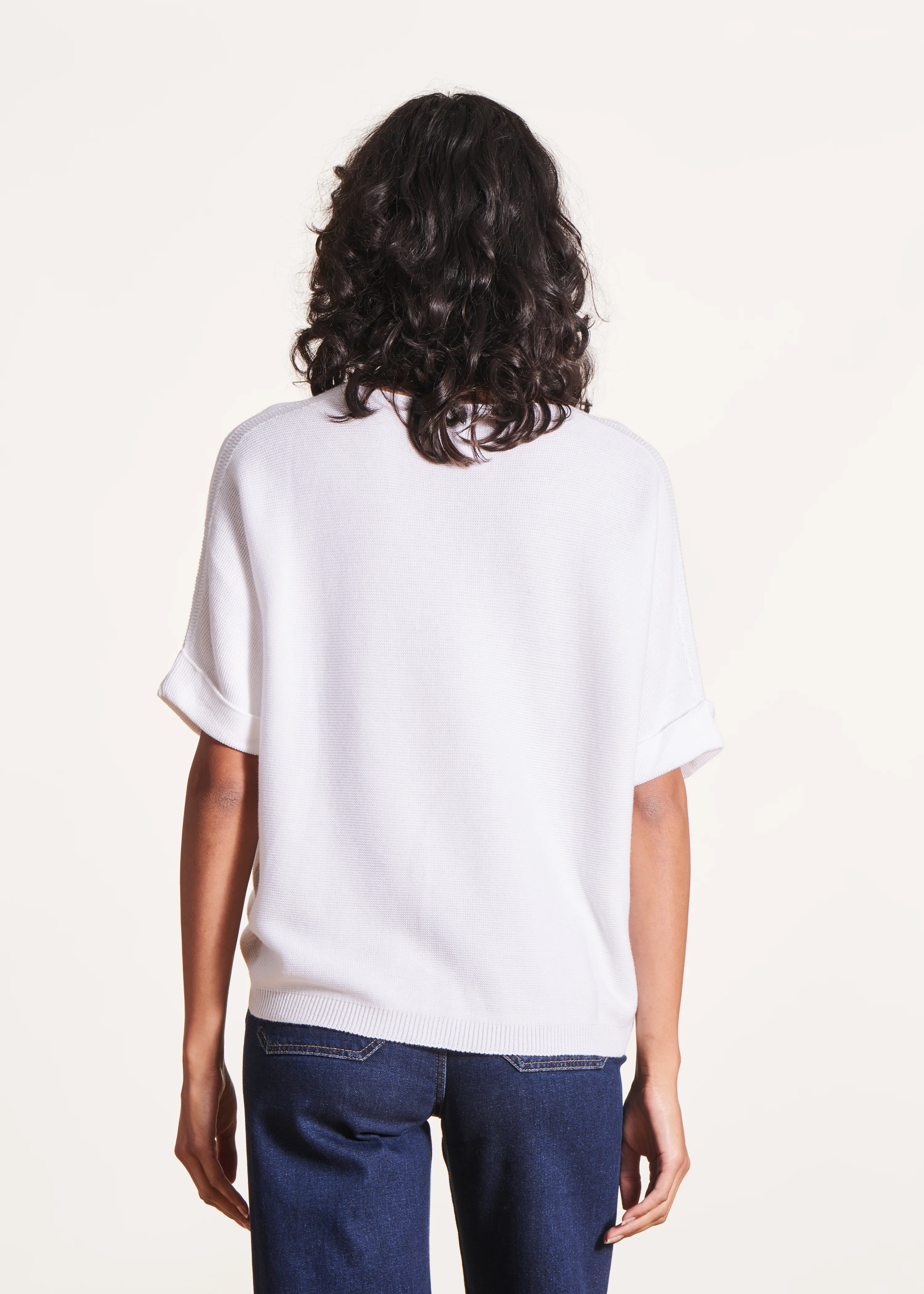 - Finitions bas de manches avec un revers, finitions bas de corps et encolure en bord-côte