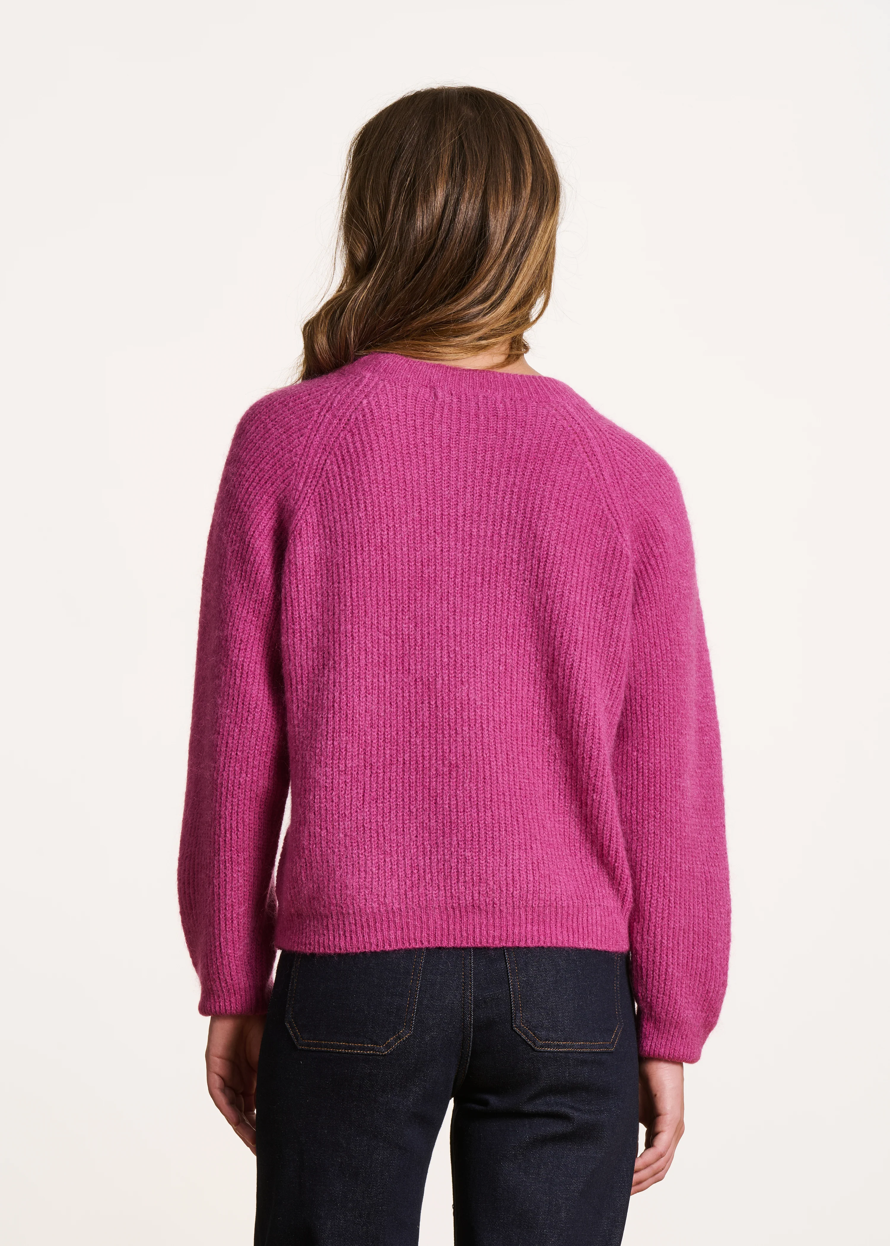 Pull rose fuchsia manches longues col rond maille à côtes