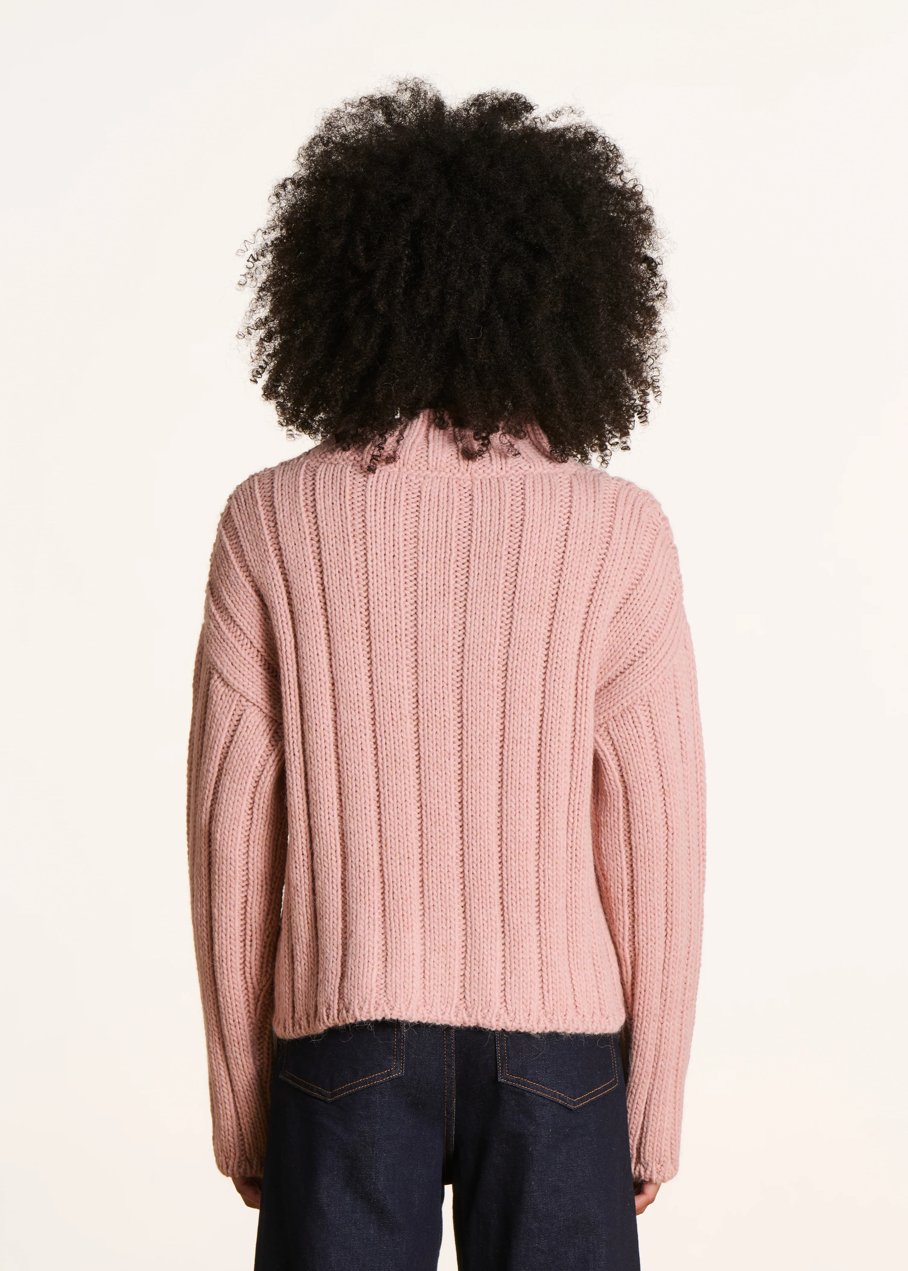 Pull rose poudré manches longues col montant
