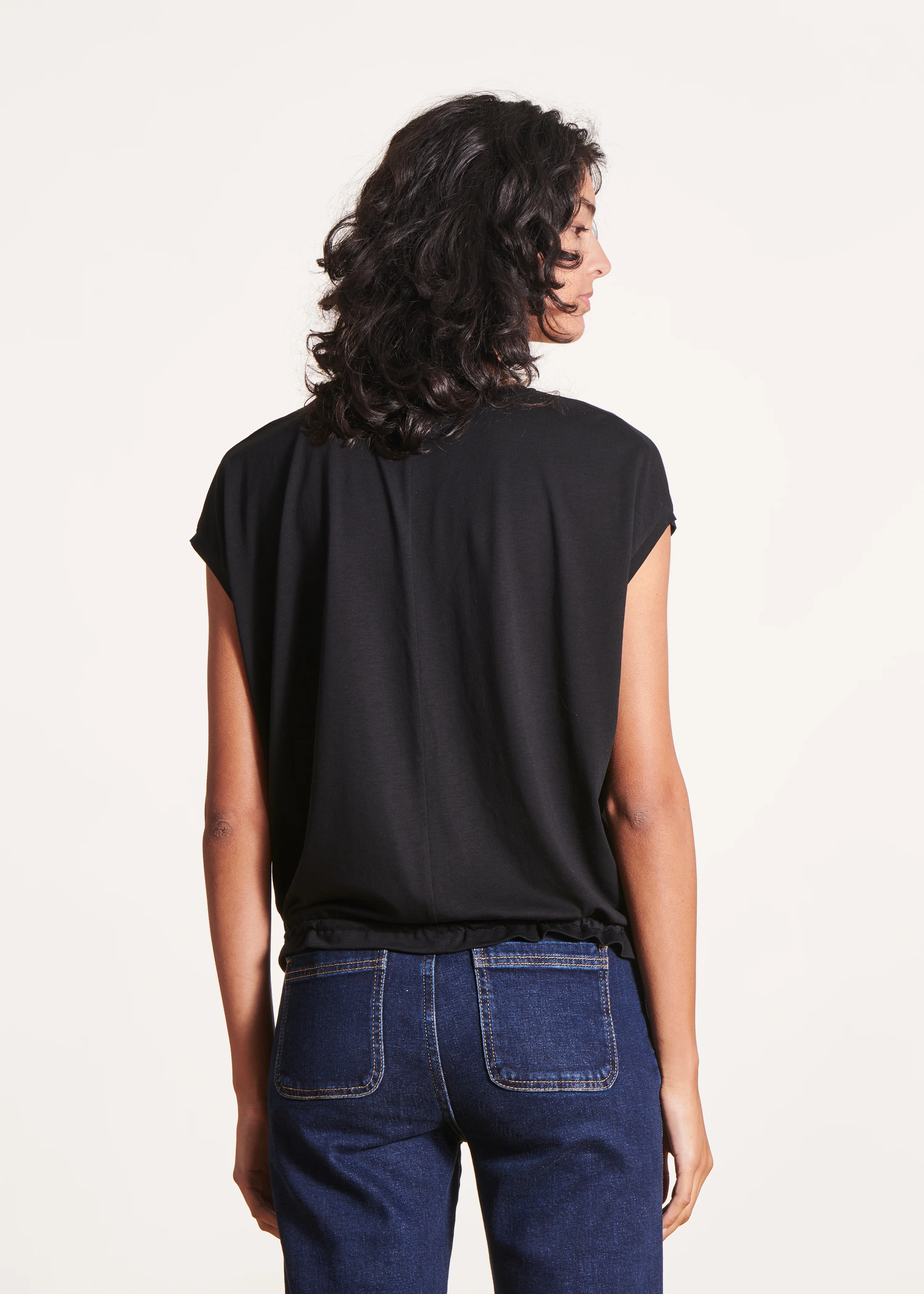 -70%T-shirt blousant noir en lyocell manches courtes—