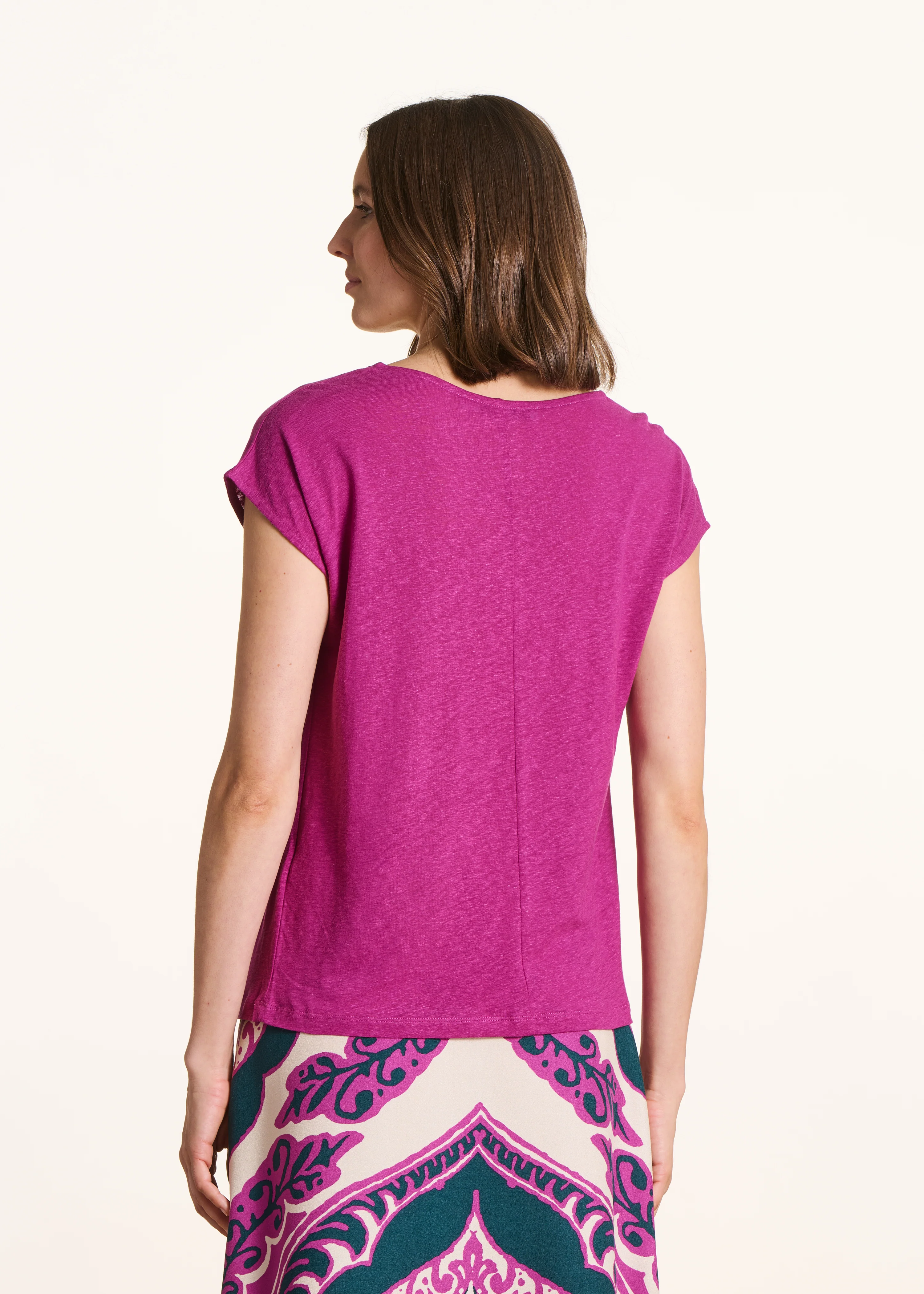 T-shirt droit rose fuchsia col rond en lyocell lin