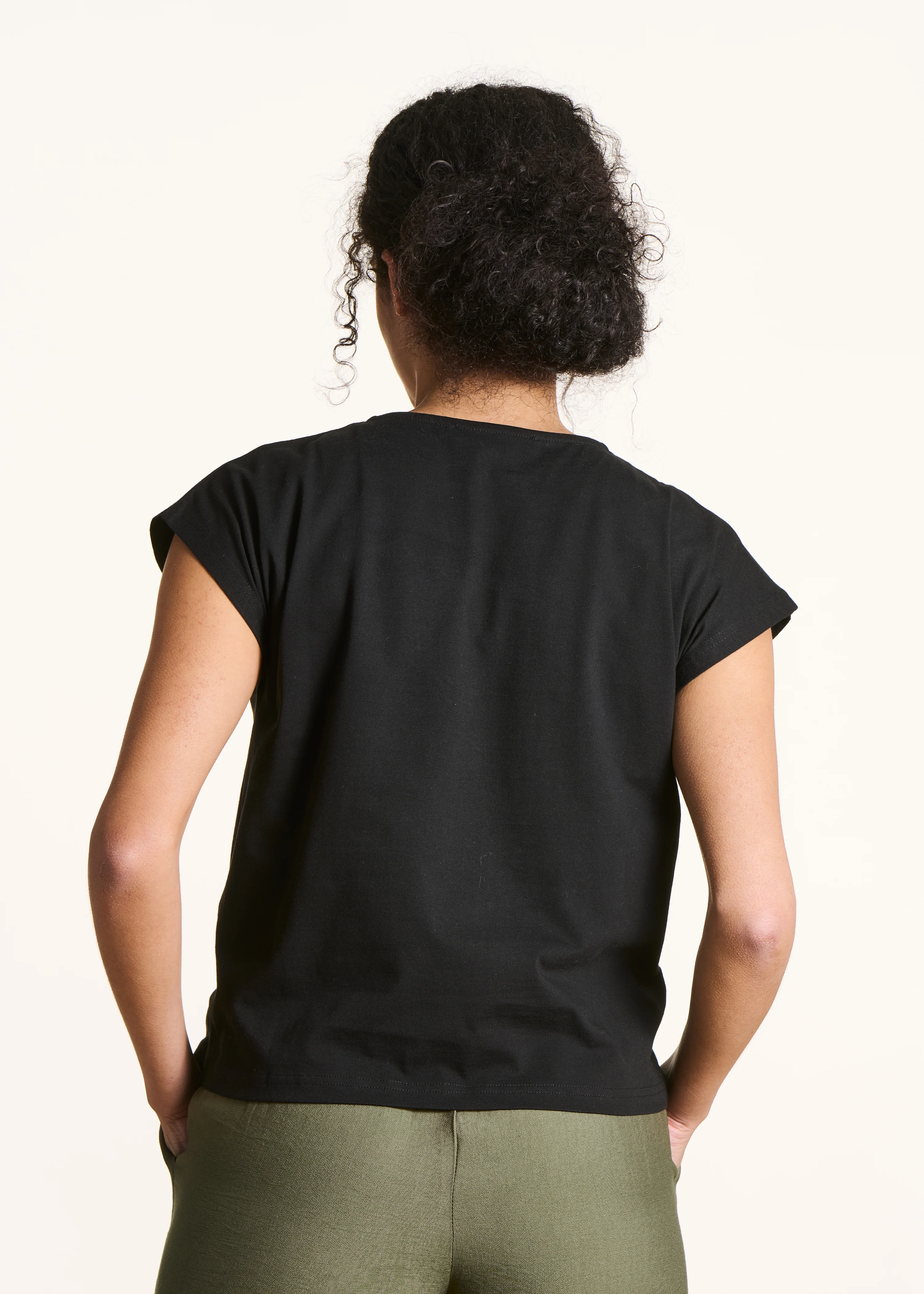 -70%T-shirt noir manches courtes en coton biologique—