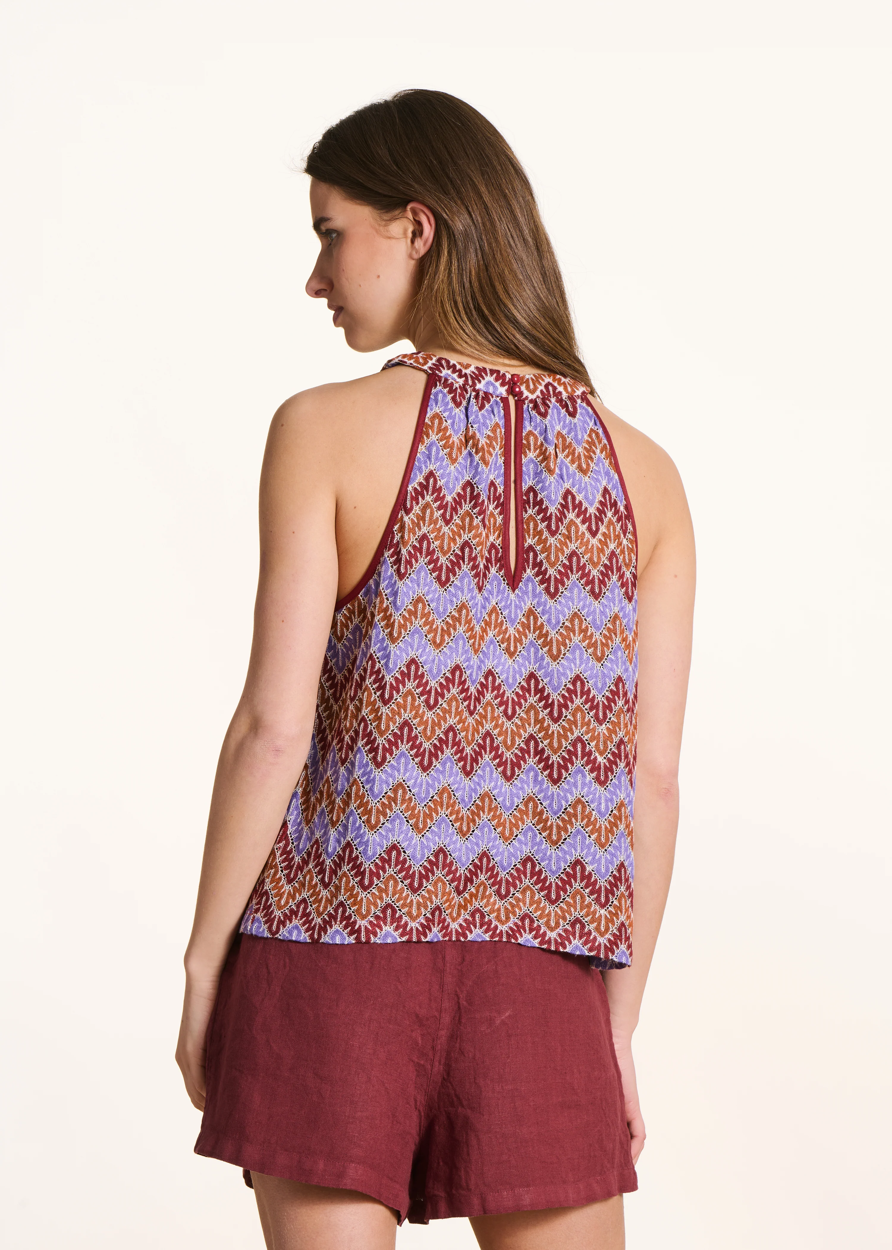- Tee-shirt sans manches en crochet multicolore zigzags